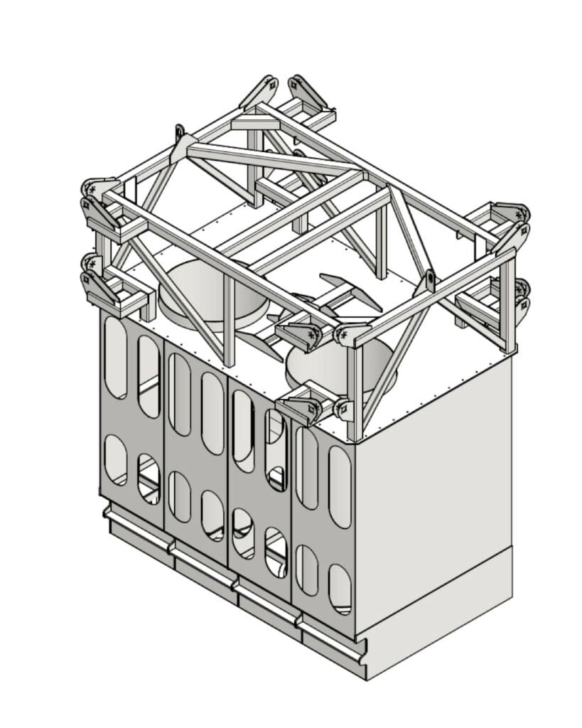 – Revisie van twee pompframes met nieuwe rolgeleidingen, hijspunten, P-rubbers en RVS-aanslagprofielen