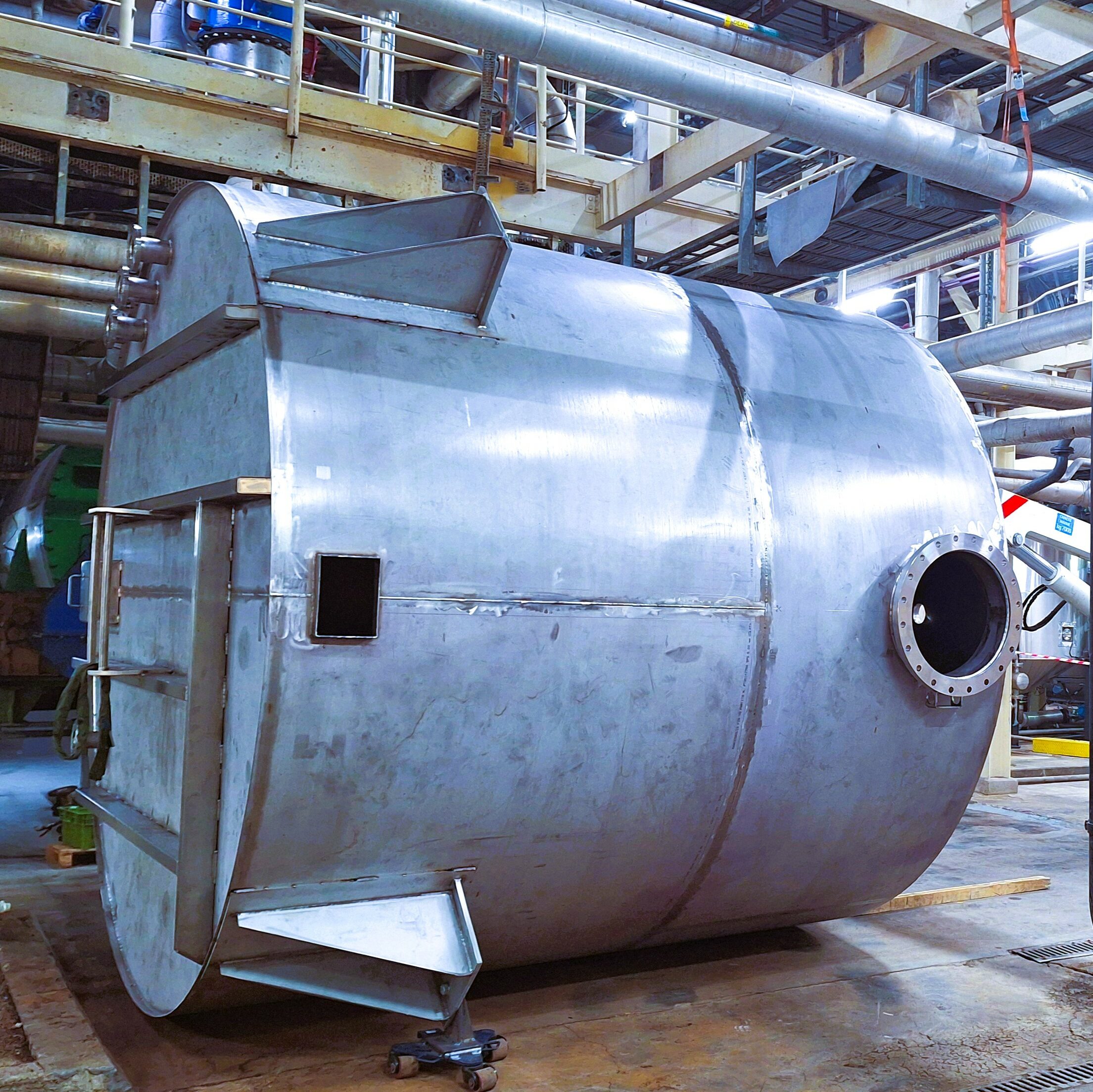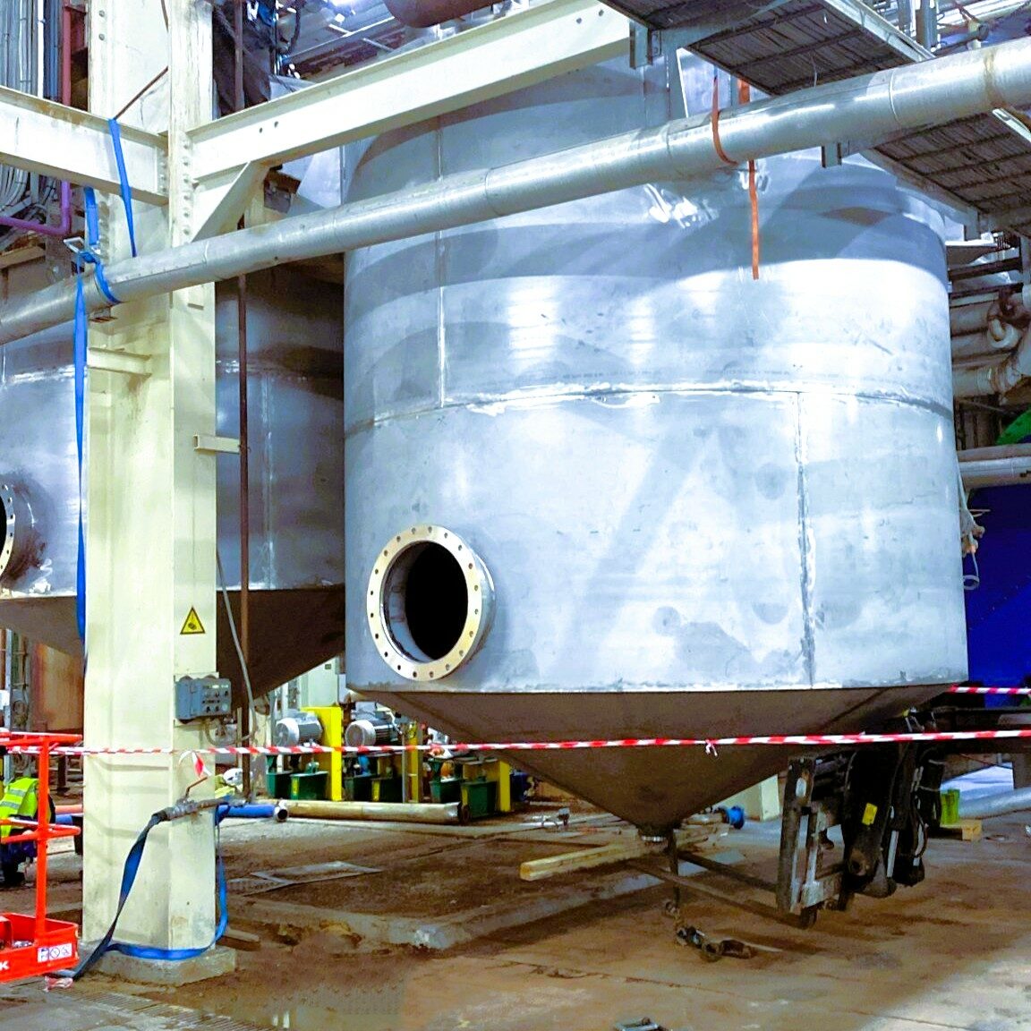 De oude tanks werden verwijderd en de nieuwe werden in onze werkplaatsen geherproduceerd. Ze dienen als buffertanks voor spoelwater – een essentieel onderdeel van hun productieproces.