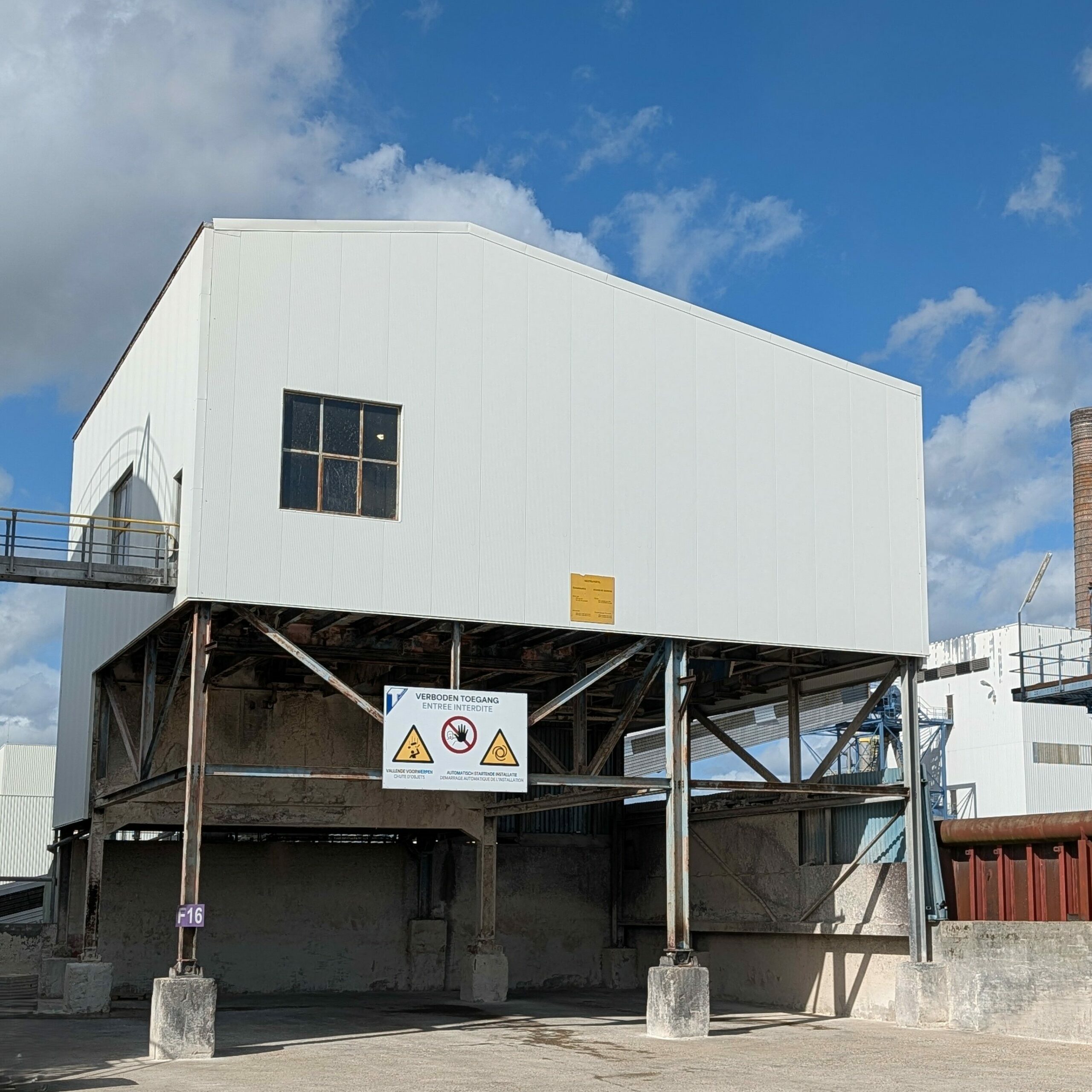 Deze verouderde bekleding werd zorgvuldig gedemonteerd en vervangen door nieuwe sandwichpanelen. Zo zijn de filterpersen in dit gebouw opnieuw optimaal beschermd tegen weer en wind.
