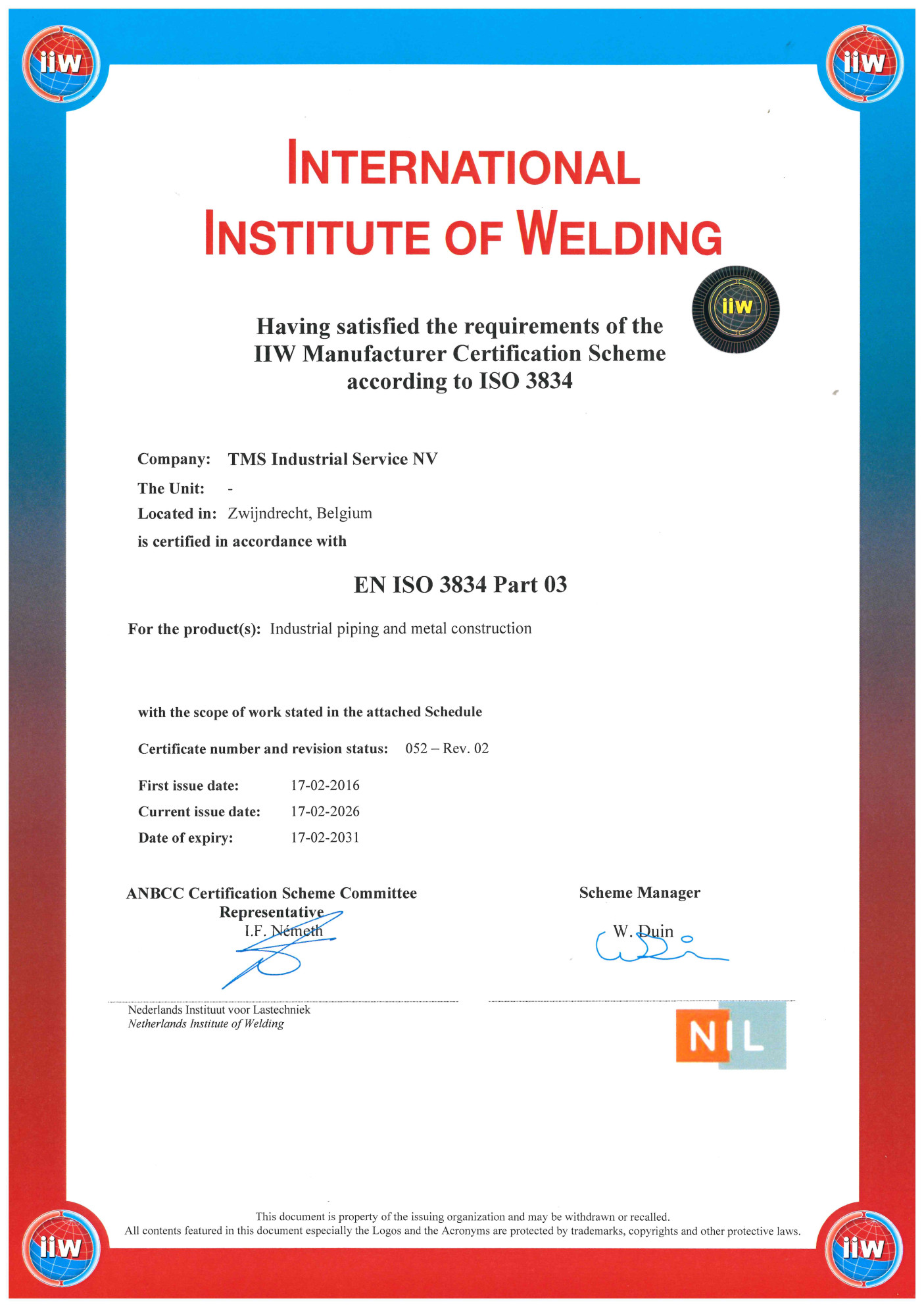 ISO 3834-2 TMS Industrial Services Nederland BV (Moerdijk)