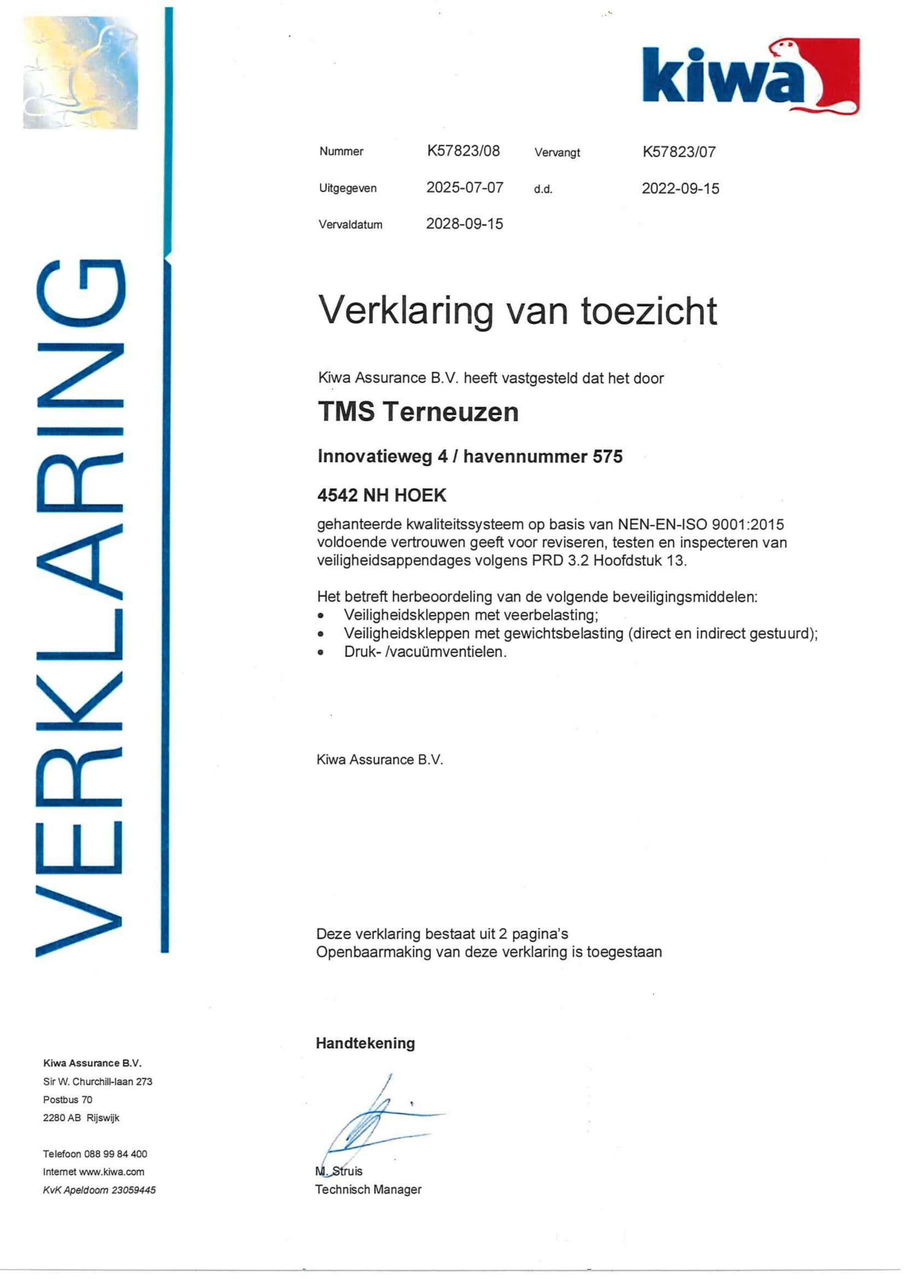 Veiligheid en kwaliteit gaan hand in hand omdat ze onlosmakelijk verbonden zijn met het volgen van procedures. Daarom hecht TMS Industrial Services ook veel belang aan certificering. Hieronder kan u al onze certificaten raadplegen.